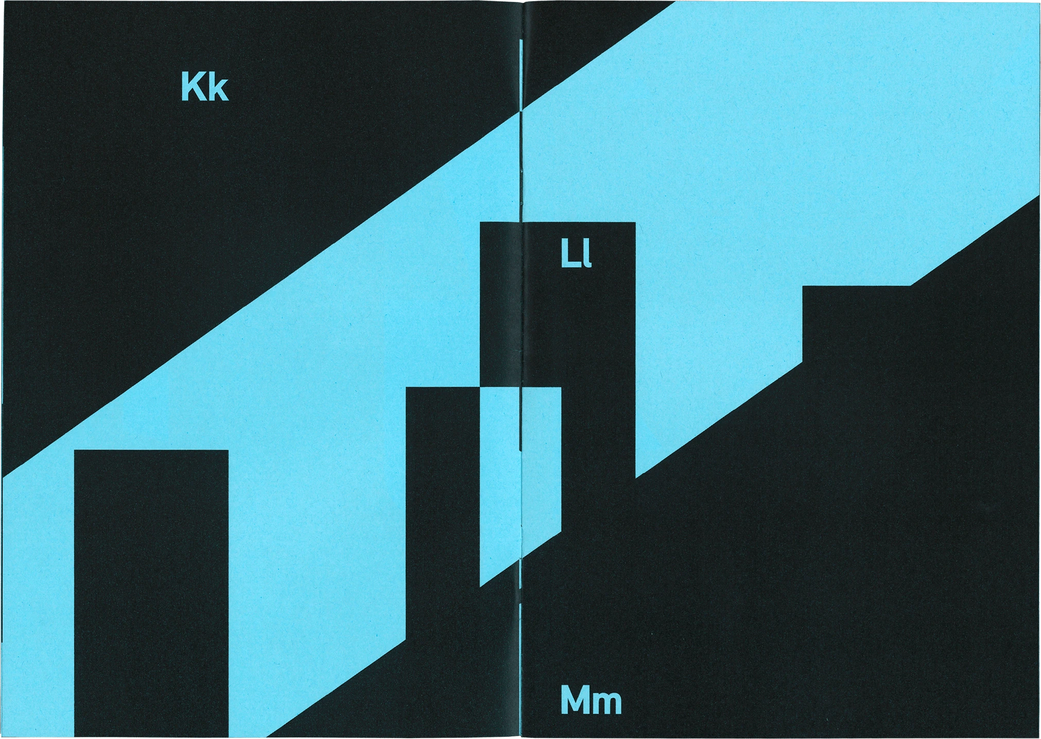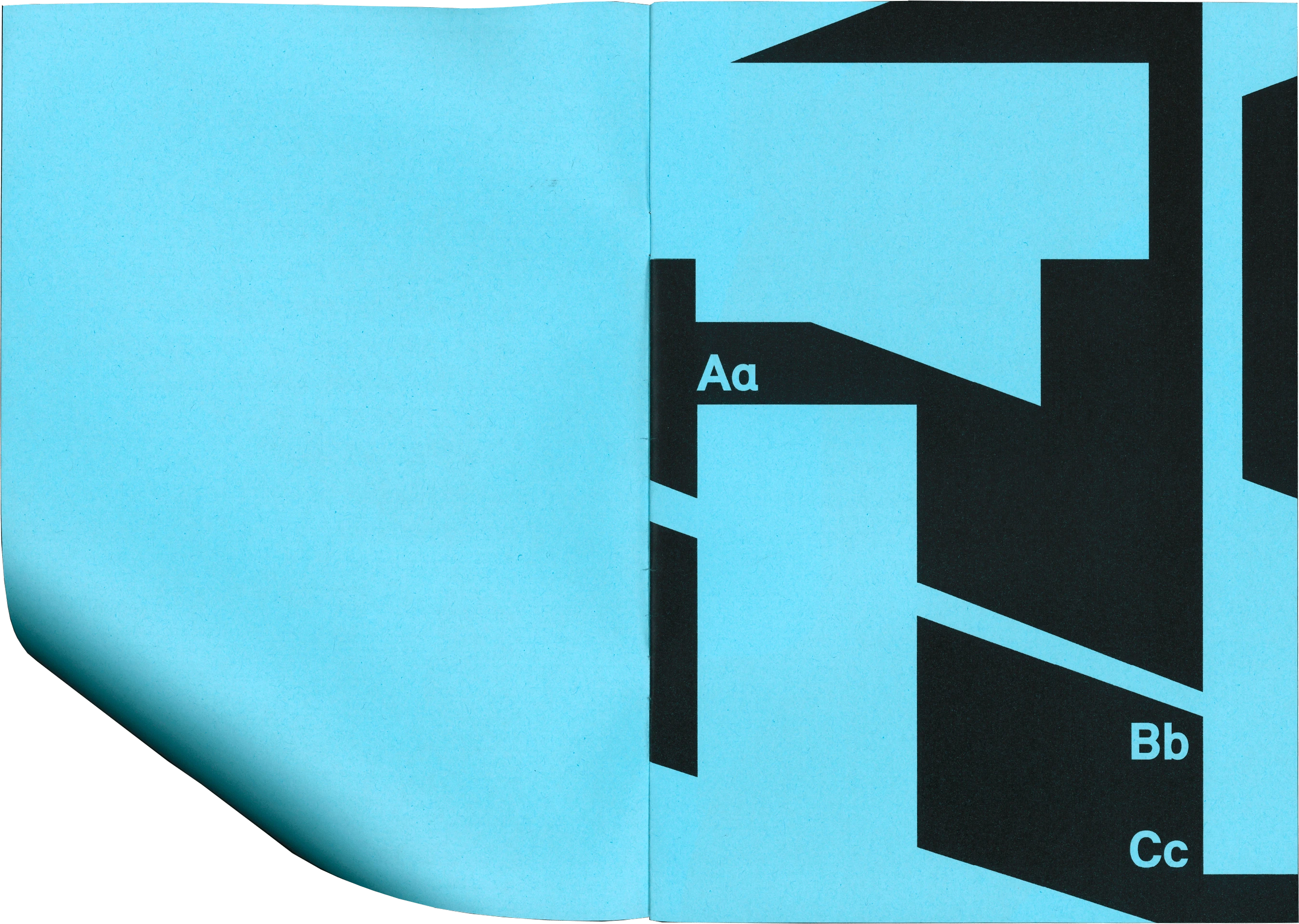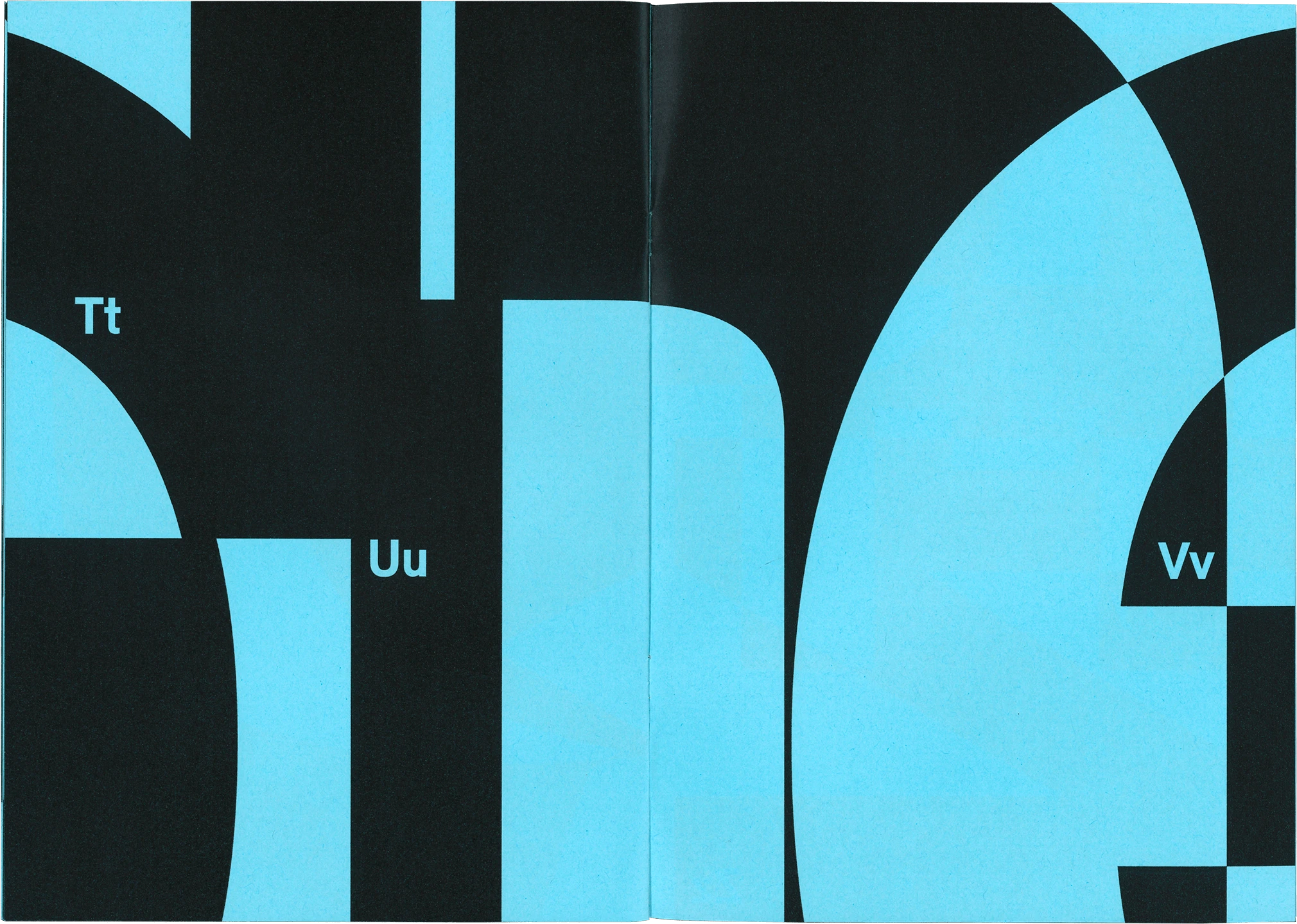 Die Schrift Relevant steht im Fokus des Type Specimens, der die Formen und Eigenheiten der Schrift vergrößert und überschneidend darstellt. Dabei liegt der Schwerpunkt auf den abstrakten Formen und Konturen der Buchstaben.