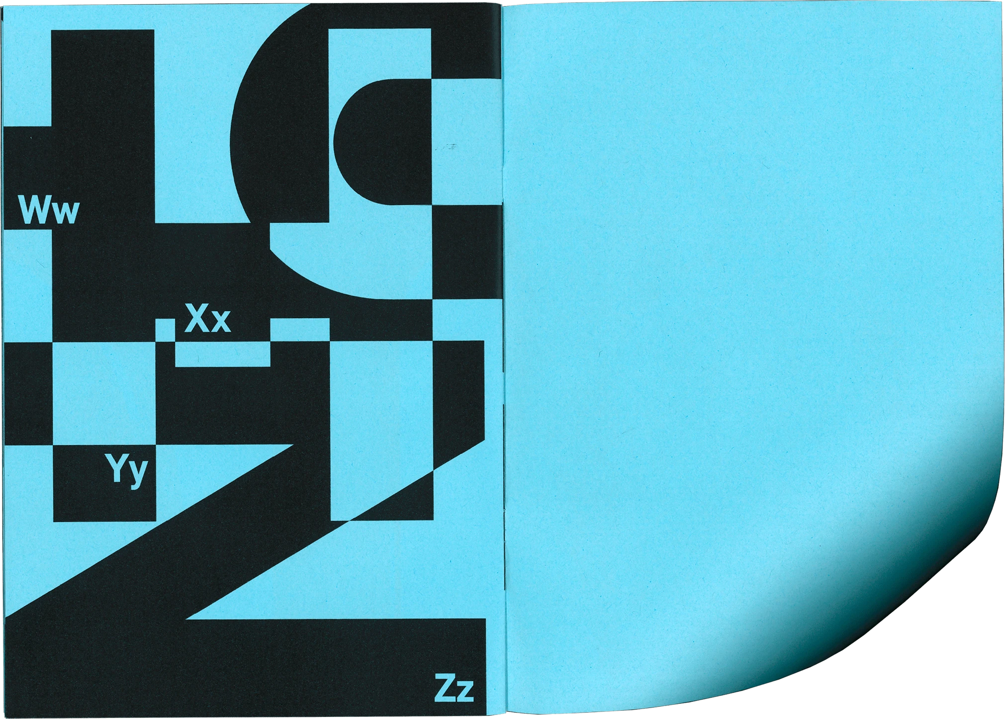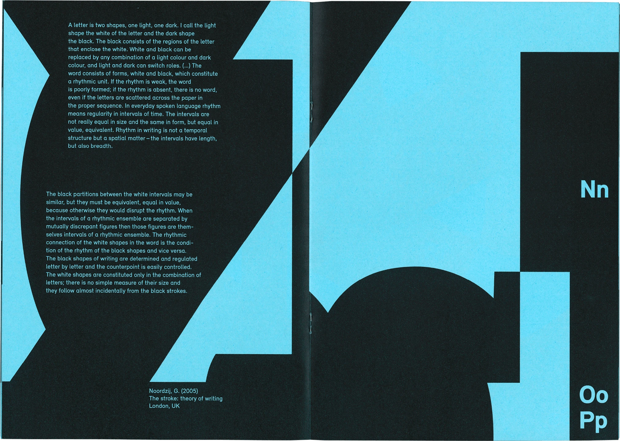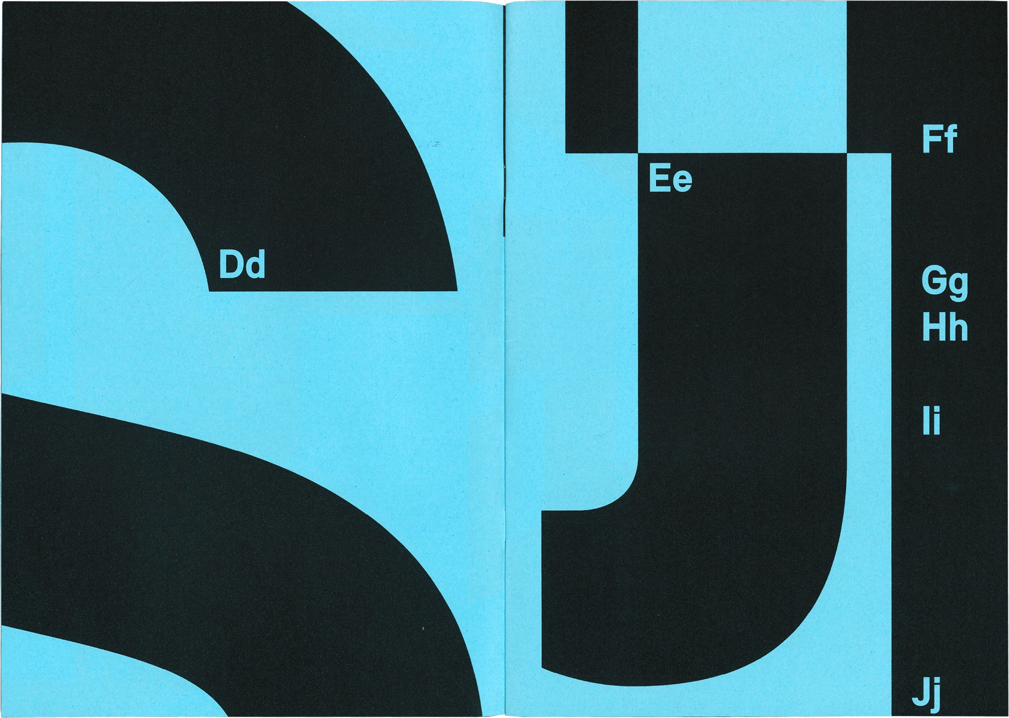 Die Schrift Relevant steht im Fokus des Type Specimens, der die Formen und Eigenheiten der Schrift vergrößert und überschneidend darstellt. Dabei liegt der Schwerpunkt auf den abstrakten Formen und Konturen der Buchstaben.