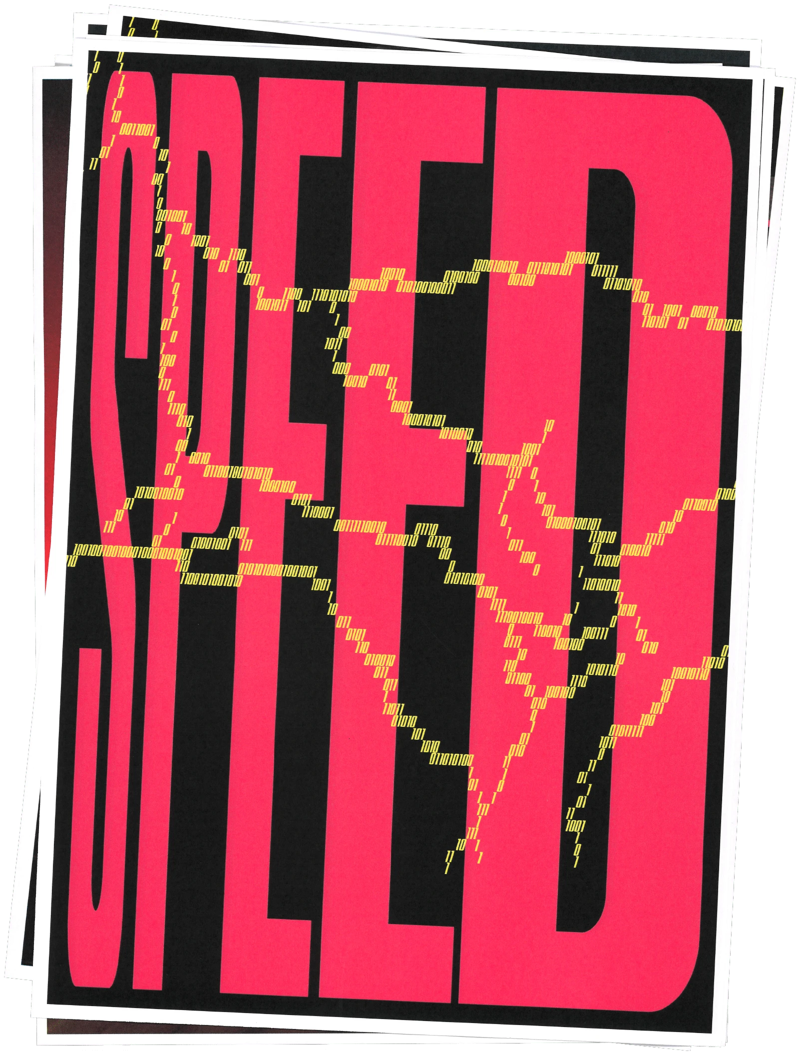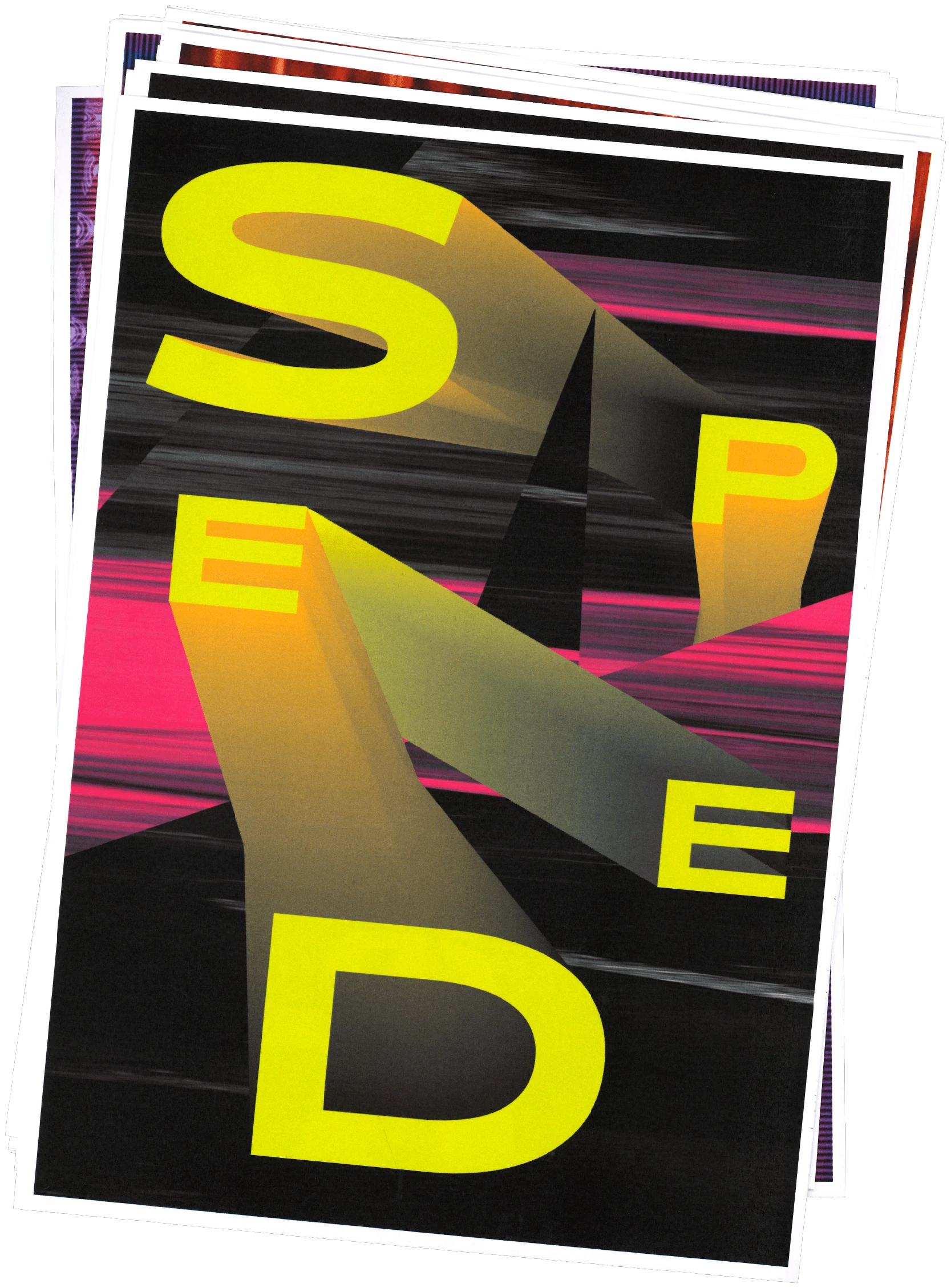 Hervorgekommen aus verschiedenen analogen und digitalen Entwurfsprozessen, beleuchten die unterschiedlichen Plakatentwürfe Aspekte des Keywords «Speed». Der Fokus lag dabei auf der Produktion von Entwürfen und der Exploration und Bildgenese zu verschiedenen Aspekten des Themenfeldes Geschwindigkeit.