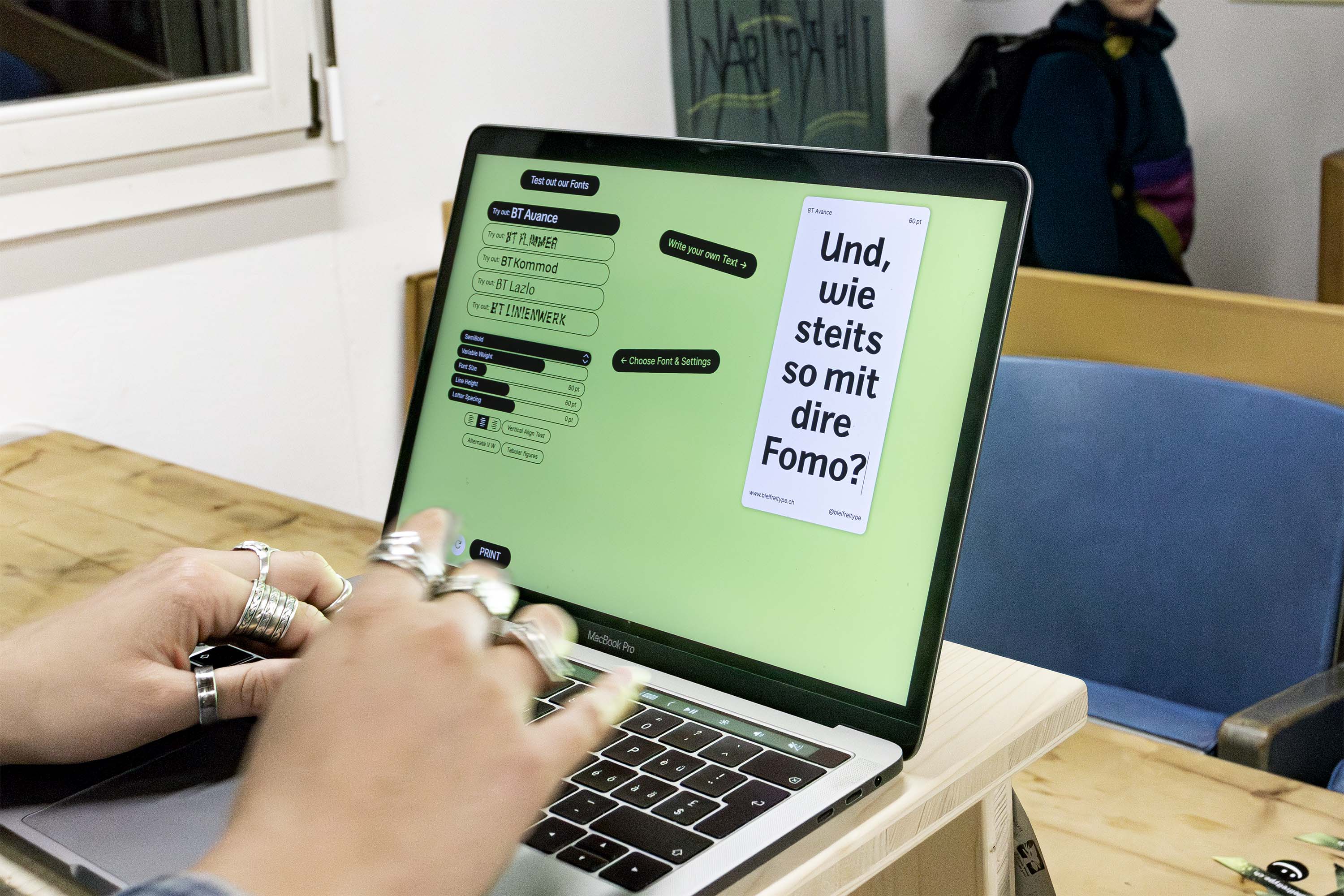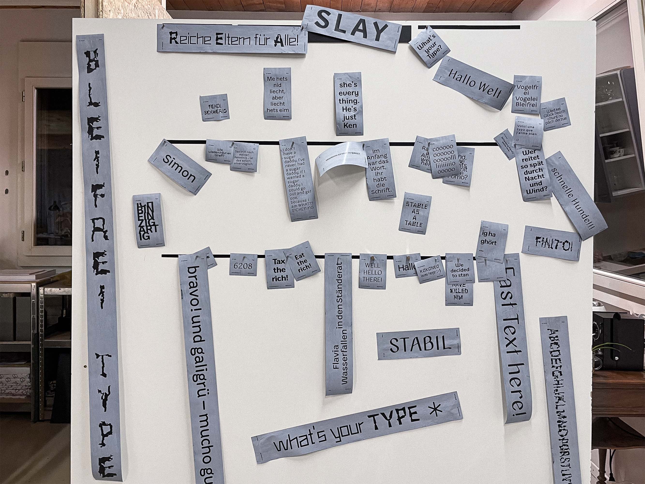 Für das Launch Apéro von Bleifrei Type habe ich eine interaktive Webseite gecodet, auf der die Besucher*innen unsere Schriften ausprobieren und Texte verfassen konnten. Verbunden mit einem Thermodrucker wurden die Wörter und Sätze direkt ausgedruckt und an eine Wand aufgehängt oder als Erinnerung mitgenommen.