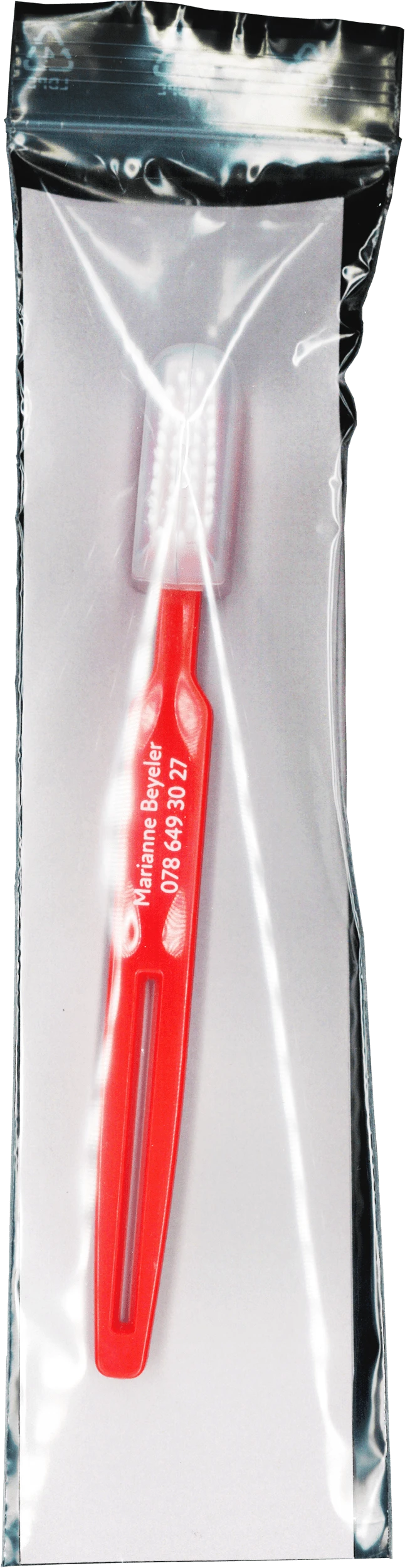 Als einzigartige Visitenkarte unterstützt die Zahnbürste meine Mutter bei ihren Aufgaben als Prophylaxehelferin in Schulen. Die Zahnbürste mit Verpackung fungiert dabei als kreatives Kommunikationsmittel, das nicht nur den Kontakt zu Lehrpersonen erleichtert, sondern auch ihre Haupttätigkeit – das Zähneputzen mit Kindern – auf ansprechende Weise präsentiert.